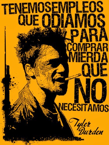"Si está leyéndola, entonces esta advertencia es para usted. Transcurre un segundo de su vida por cada palabra que lea de esta inservible cláusula. ¿No tiene otras cosas en qué ocuparse? ¿O le impresiona tanto la autoridad que respeta y le cree todo al que dice tenerla? ¿Lee todo lo que supuestamente debe leer? ¿Piensa todo lo que supuestamente debe pensar? ¿Compra lo que le dicen que debe querer? Salga de su apartamento. Conozca a alguien del sexo opuesto. Deje a un lado las compras excesivas y la masturbación. Renuncie a su empleo. Búsquele pelea a alguien. Pruebe que está vivo. Si no proclama su humanidad se convertirá en una estadística. Ya está advertido..."